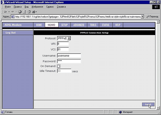 3. Запустите броузер и зайдите по адресу http://192.168.1.1/