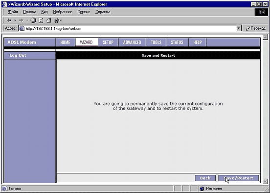 6. Нажмите кнопку Save/restart.