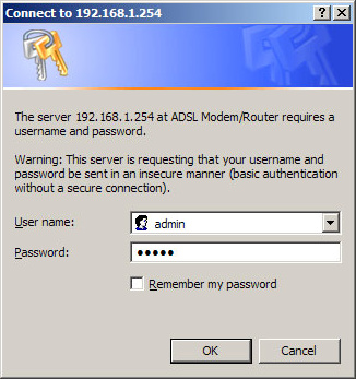 - Запустите браузер и зайдите по адресу http://192.168.1.254