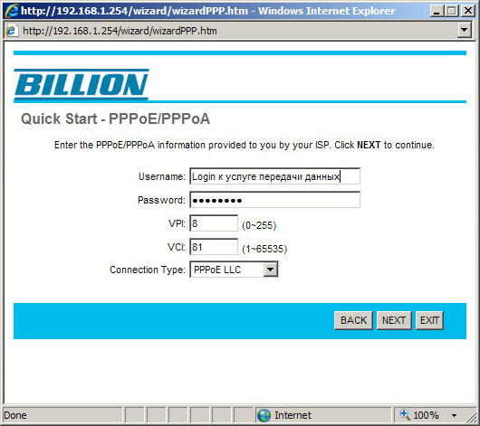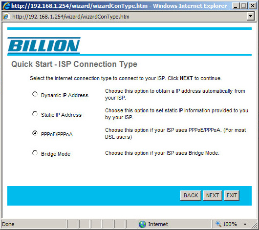 Настройка ADSL модема/рутера Billion BiPAC 5200(S) в режим маршрутизатора с NAT