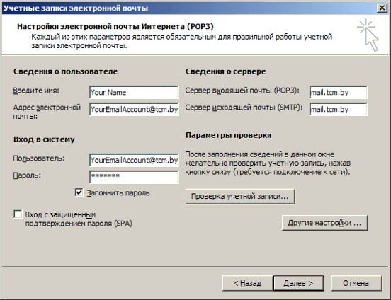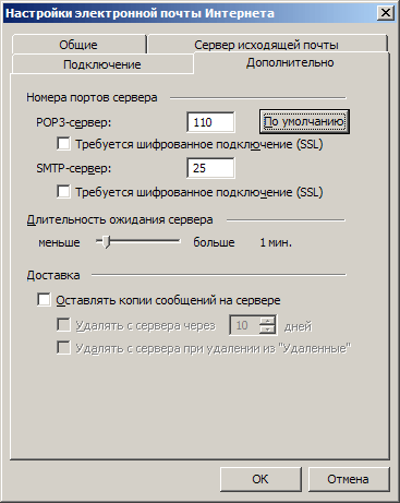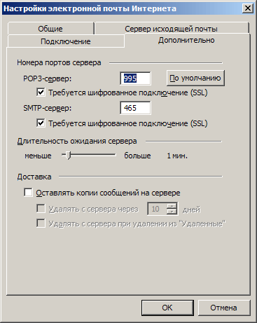 Настройка почты в Microsoft Outlook 2003Главная / Для абонента / Настройка почты в Microsoft Outlook 2003 ![]() ![]() ![]() ![]() Если требуется шифрованное подключение (SSL) настройте соединение в соответствии с картинкой ниже. ![]() ![]() | |||||||||||